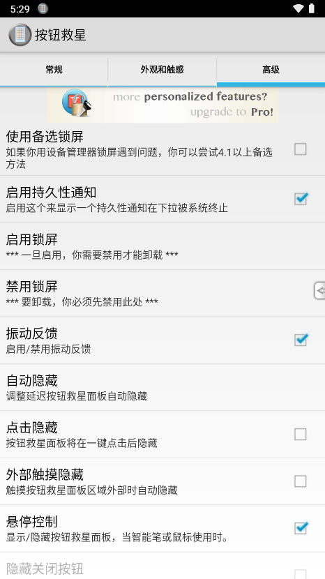 6、对于虚拟按键上提供了自动隐藏等功能,并实现后台自启等功能非常强大。