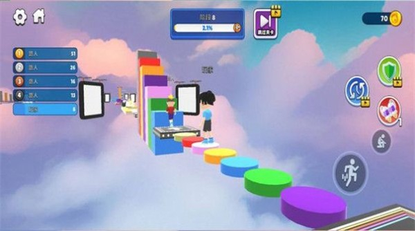 冲天之旅是一款有趣的竞技攀升主题休闲游戏,玩家将会进入到一个颜色鲜艳的攀登世界,这个世界中有着各种不同的攀登台阶,不同的台阶有着不同的颜色,快来开启你的攀登竞技冒险之旅,享受攀登的乐趣吧!