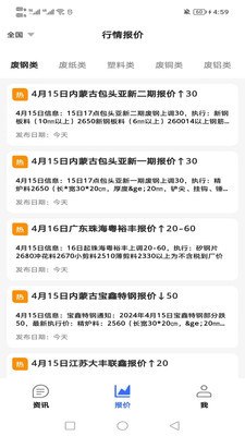 废料邦app是一款任何用户都能回收废品的最新资讯软件,可以给大家带来很多全面的报价以及源头,这样才能精准的把控市场,合理进行回收,并能优化整体的回收过程,轻松满足大家高效的处理方式,不仅如此,每天都能拿到第一手的行情资料,全部都能满足用户的需求,并且该软件会带来很多类似的对比数据,通过各种图标的方式进行整理,可以分析的更全面,如果你也有需要可以来下载了解一下!