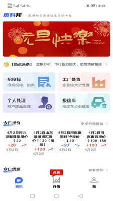 废料邦app是一款非常强大的废品线上回收软件,能够看到近期比较热门的一些废品回收方式,同时还能带来当前最新的一些废品回收行情价格,让有需要的用户能轻松了解到所有内容,十分的直观,有任何市场上回收价格的变化,都能第一时间通知到用户,想尝试的用户快来下载吧!