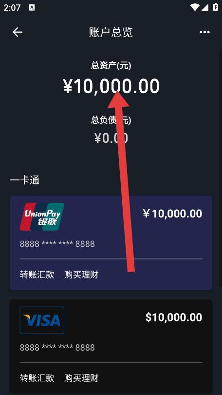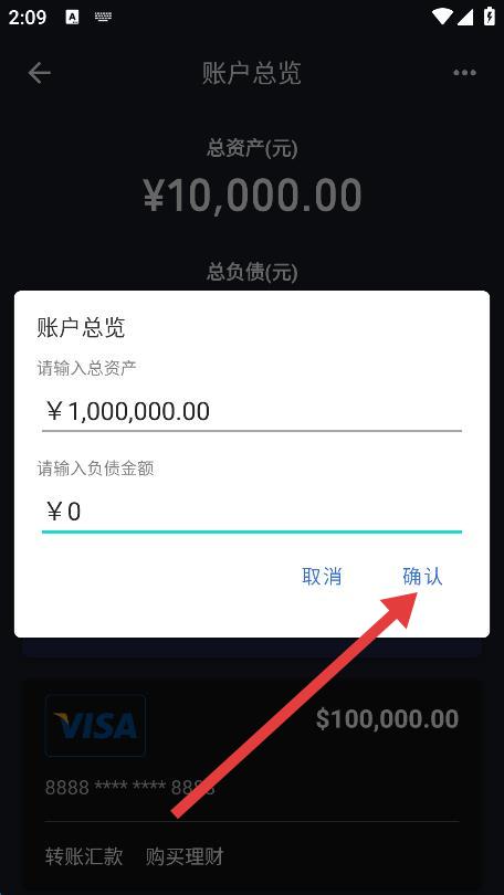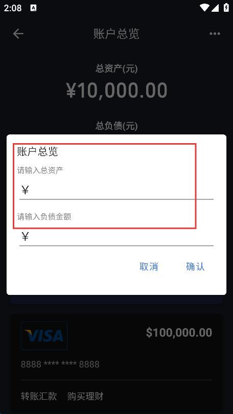 3、在弹出的账户总览输入框中,根据需求输入想要模拟的金额数值。