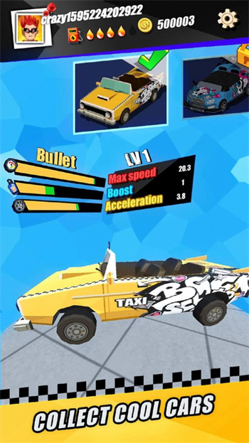 - 无敌模式,点击油门模式可以进入无敌的模式,在这个模式之下的士的力量与速度瞬间爆棚,可以将道路上的车全部撞飞;