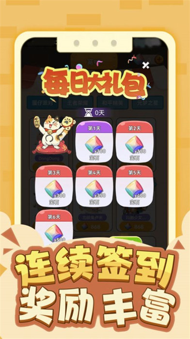 4、适合更多的用户们去进行游戏体验操作的,每一天签到就可以获取到礼包。