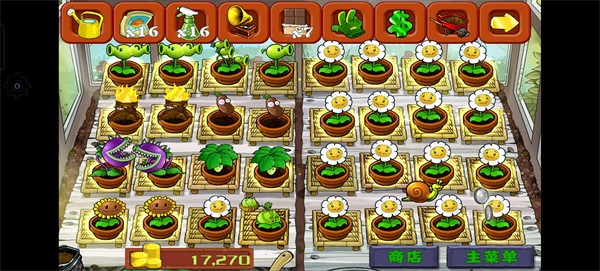①【强化植物】:强化自己的植物,大大的提升植物的战斗力,帮助玩家消灭僵尸;