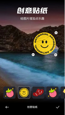 a、海量贴纸,可以直接使用软件内的贴纸,打造视频更有趣的氛围感;