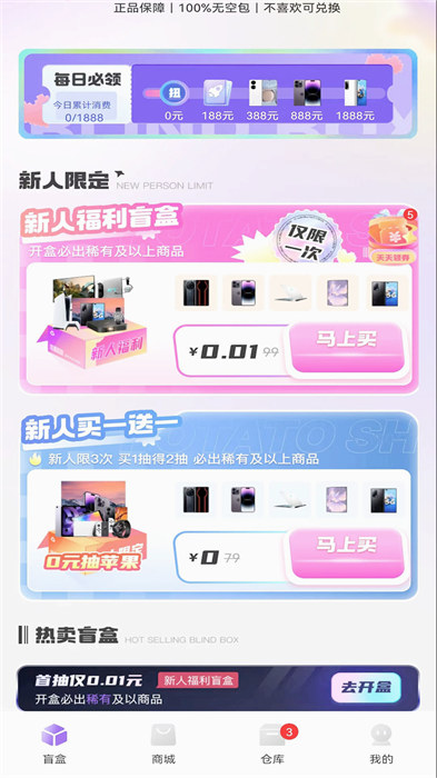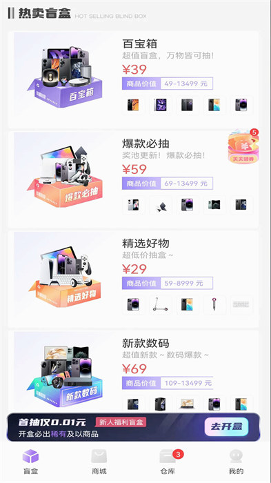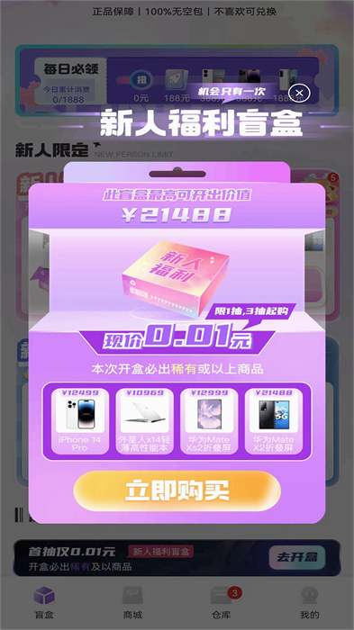 1、领取新人的福利盲盒的活动,价格会更加的便宜而又实惠,省了很多的钱;