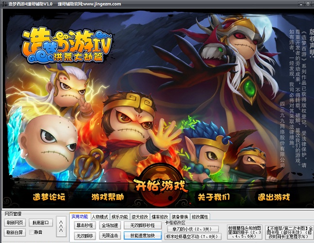 造梦西游4瑾哥辅助是《造梦西游4》的最新辅助工具,小编最近也在玩这款游戏,十分地有趣。造梦西游4瑾哥辅助拥有清理白屏、无限连击、爆率修改、一键修改血量等功能,玩造梦西游4的玩家不要错过。