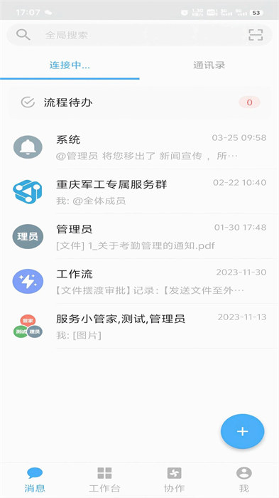 1、查看最新的工作消息的内容,轻轻松松的直接去进行交流自己的工作内容;