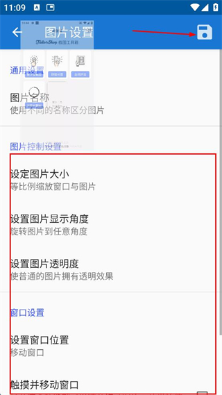 1、支持对于图片的悬浮界面的设置,自由化的控制和设置使用;