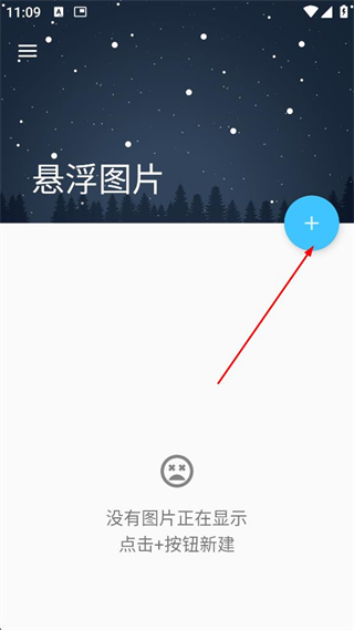 1、打开悬浮图片APP,点击蓝色“+”按钮新建图片。