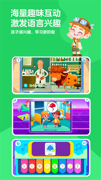 ABC快乐英语星球是一款干货满满和寓教于乐的幼儿英语启蒙学习的软件,通过这款软件可以完善优质的课程体系,培养小朋友们听说读写等综合的能力,拥有十分严谨专业的教研大纲和完整有趣的游戏世界观,有需要的用户们可以下载体验。