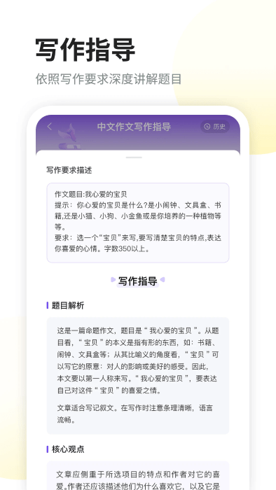 2、为用户们提供了专业的写作指导,并通过题目解析快速的了解核心观点;