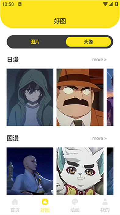 a、漫画壁纸,平台当中有着很多高清壁纸,可按照喜好进行缓存和分享;