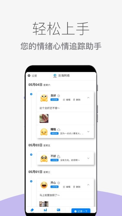 2、在操作上没有非常复杂的工具使用,轻松上手成为情绪心情追踪助手;