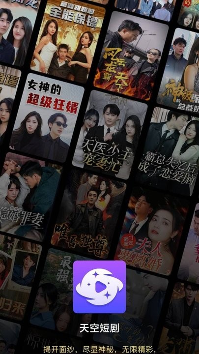 天空短剧app是一款能够在线观看各种免费短剧的软件,这里的资源无需大家付费,一次性能免费观看全集,一定给大家带来更轻松的观影体验,并且软件这里还有非常丰富的短剧题材,致力于让每个小伙伴的空闲时间都能来观看短剧,喜欢的小伙伴快来下载吧!