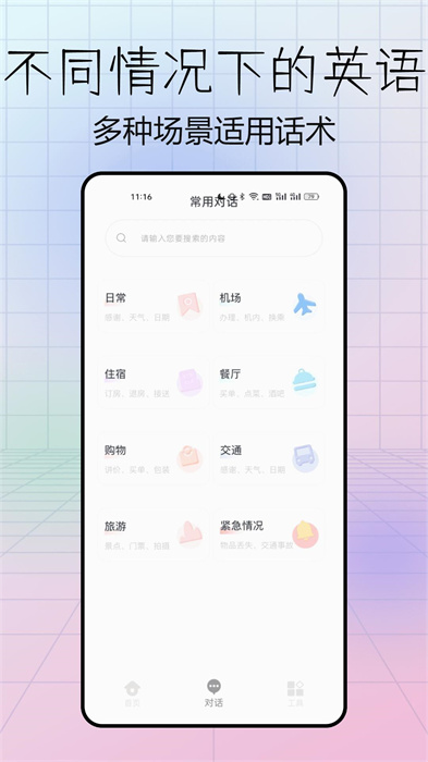 3、提供了日常的英语对话的操作,轻轻松松的直接进行知识内容学习的需求;