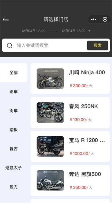 1、摩托车租赁的商家可以上传自己的店面摩托,用户们可以租赁上架的摩托;
