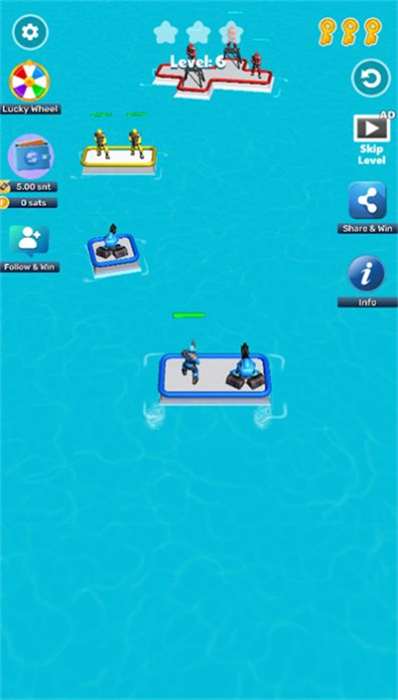 部队筏战争竞技场最新版是一款海上木筏战斗主题的冒险游戏,玩家将会在游戏中化身为一个战斗能力极强的竞技者,需要在游戏中完成各种不同的海上战斗,同时,玩家还将需要收集一些不同的战斗器具,并利用这些不同的战斗器具来实现战斗的胜利,快来加入游戏吧!