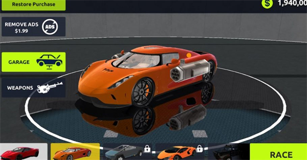 1、具有多种不同的顶级赛车等待着玩家的选择,不同的赛车有不同性能;