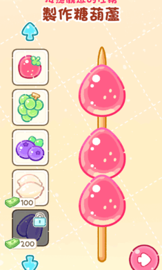 1、糖葫芦的制作方式十分的简单,玩家只需要进行点击的动作即可实现;