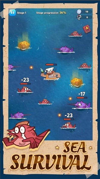 游戏的剧情也是非常的精彩的,要求玩家在大海上不断的进行生存挑战,会随机出现不同的挑战,玩家发挥自己的智慧来完成挑战即可,野兽的实力都是不一样的,要合理的运用不同的武器来将其消灭,获得大量的经验和奖励,提升角色的能力,补充自己的物资,升级自己的木筏,可以收纳更多的物资,解锁新的内容来游玩,成为最后赢家。