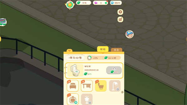 1、游戏前期养老院中不会有太多的建筑设施,需不断的进行建筑的解锁;