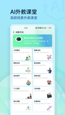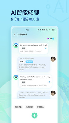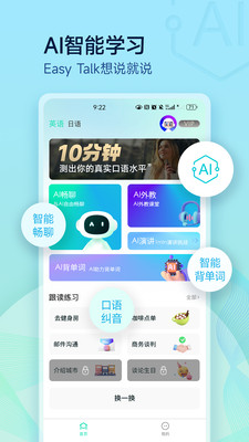 口语随意说app是一款能够线上学习和锻炼英语口语的软件,这里整理了一些专业的练习词汇和口语表达的方式,全部都能到线上挑选,直接在线上制定关于自己的锻炼计划,这样一定能有效的提高口语能力,每段时间的学习情况软件都能存储下来,并给出一些更合理的建议。