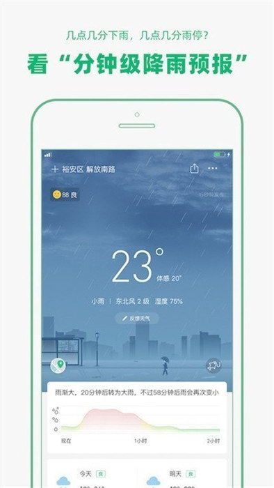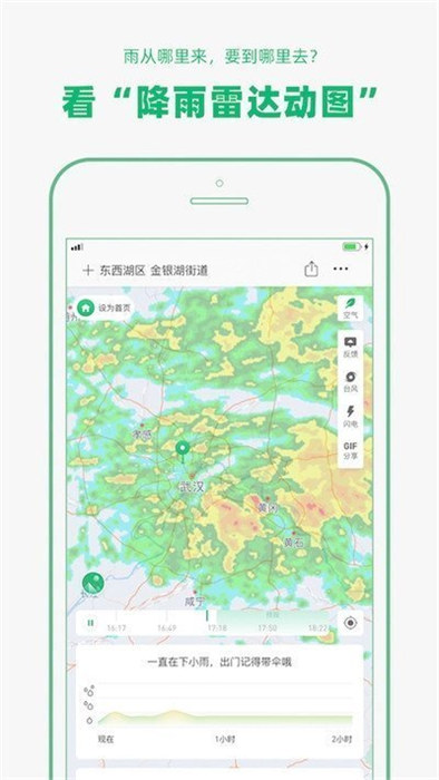 4、精准到分钟级的降雨预报,清楚的知晓到具体什么时间会停止下雨或者变小。