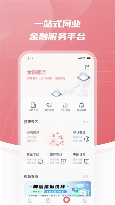 邮你同赢app是一款为同行客户所打造出来的服务内容的软件,提供了便捷的金融服务的内容,推荐更多的相关产品的内容,在线上直接处理各种业务的事务,享受到更加便捷的同行业务移动办公的体验操作的过程,有需要的用户们可以下载体验。