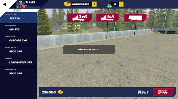 2、升级到10级,好了,你的卡车人生正事开启。首先,去银行贷款,40万一比10万一比,总共50万。然后,先去买一卡车,两个牌子随便选,但是新手不建议买肯沃驰W900,那车视野不好,车也长,不好操控。买最便宜的那一台然后升级,只升级发动机。剩下的钱,拿去买车库。