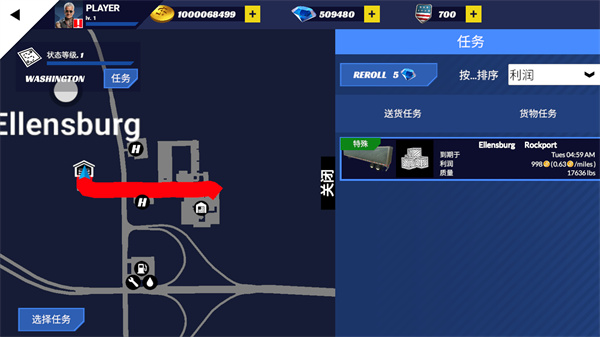 3、车库选择,我建议你进入游戏以后总部设在圣地亚哥或者洛杉矶。第二点提到的去买车库,去买内华达州的埃尔科。两者距离最远,原因我后面会提。18W美刀买了车库以后,你大概还剩24W美刀,加上前面挣得,差不多可以雇佣两名卡车司机,配两台最原始的卡车给司机{提示:卡车性能和司机效率无关}。这样一来,你在10级时候就有了一台455马力的车和2名司机两个车库的车队了。