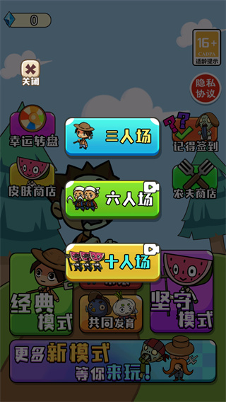 3、在经典模式中有三人场、六人场、十人场等,其中六人和十人需要看视频广告解锁;