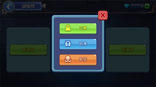 2、有三个难度选择,分别是正常、困难、疯狂;