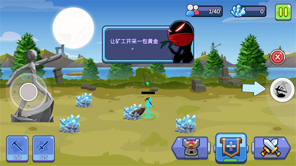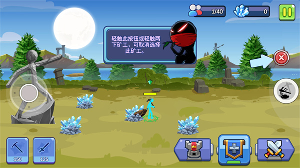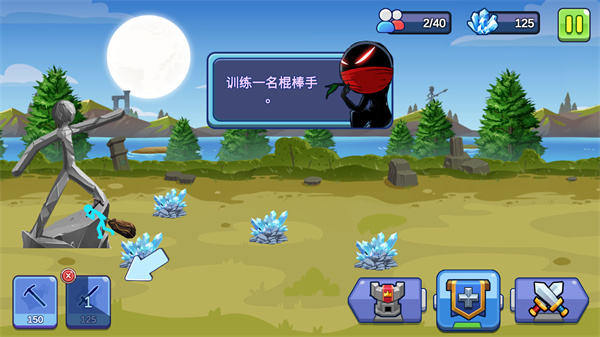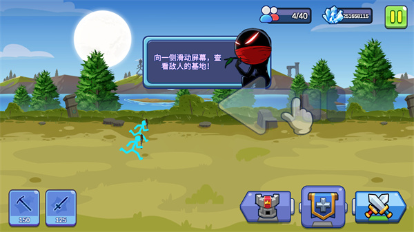 8、向右滑动到敌人的基地,你训练的棍棒手会去进攻;