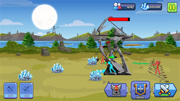 3、建立你最强大的火柴人防御,建造强大的塔楼来消灭成群的火柴敌人;