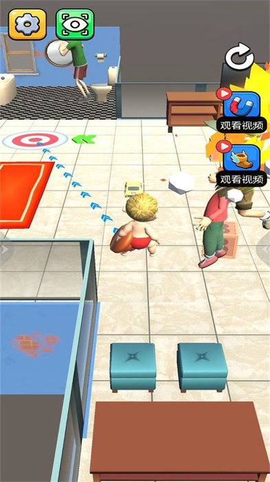 1、需善于利用场景中的家具或者是墙壁来进行躲避,以顺利的完成关卡;
