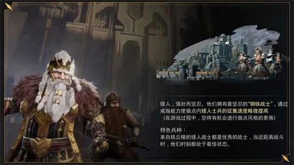 不同的风格开局时会更快解锁自身种族的聚集地,意味着我们可以在发育初始阶段,可招募到该种族的兵种帮助自己。再且发展起来后,还能招募到该种族的特殊兵种,拥有独一无二的能力。随着主城的发展和势力扩张,战术家可解锁更多兵种聚集地,也会更多优秀的军队慕名而来。