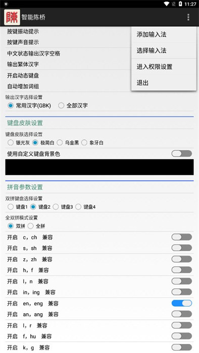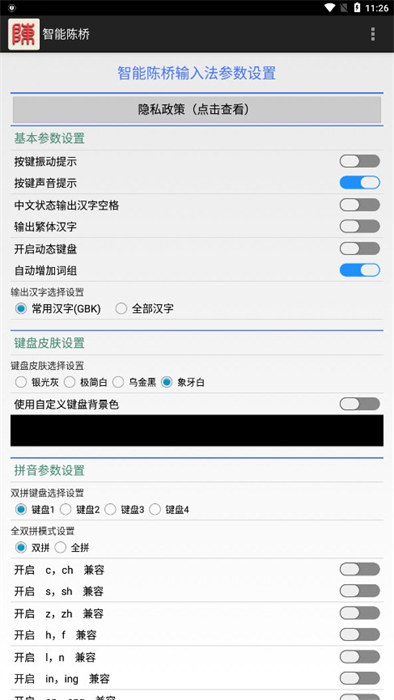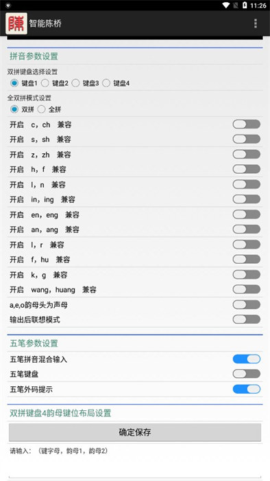 2、拼音参数信息内容的设置,支持双拼和全拼等参数信息内容的设置和操作;