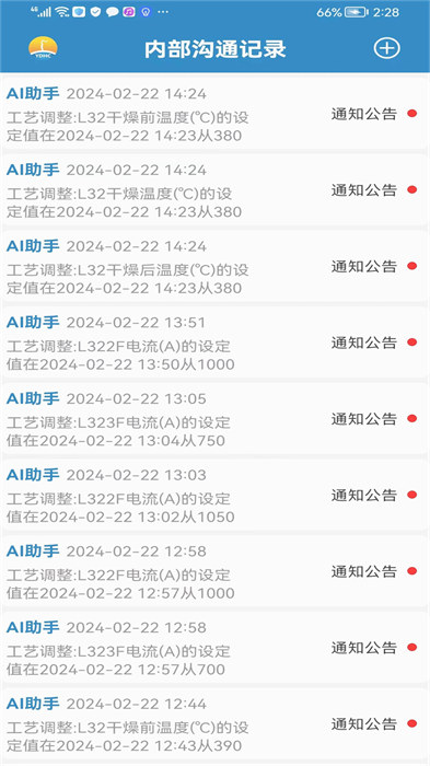 移动化成app是一款公司内部管理员工的应用,集合了PC端和软件为一体,方便用户们记录自己日常工作的具体事宜,记录下自己生产数据的信息内容去进行查看的操作,通知的公告信息内容都是可以十分详细明了的查看到的,进行内部直接进行沟通的操作,都是一些比较实用的功能内容去使用。