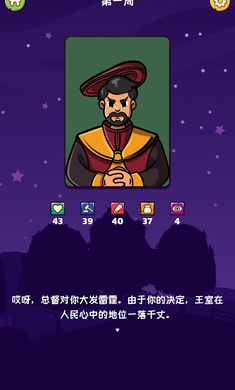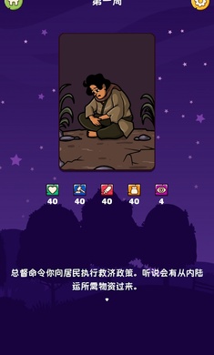 你将在一个岛屿上担任当地的官员,需要在这个试用期间发展村庄的经济,抵抗危险的土匪团,保护村民的资产,会有非常多外部因素,影响你的管理治理,每当有危险事情发生的时候,都需要做出相应的决定也就是选择克服村庄出现的危机情况,将会带来不同的命运走向,最终结果由你来决定。