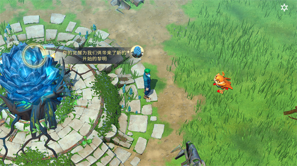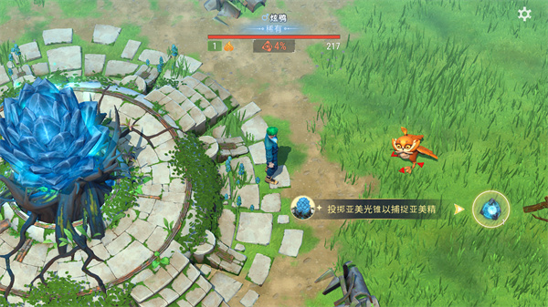 2、进入游戏后,你的觉醒为我们俩带来新的开始的黎明,点击左侧的水晶,投掷亚美光锥以捕捉亚美精灵;