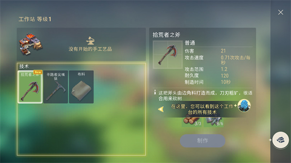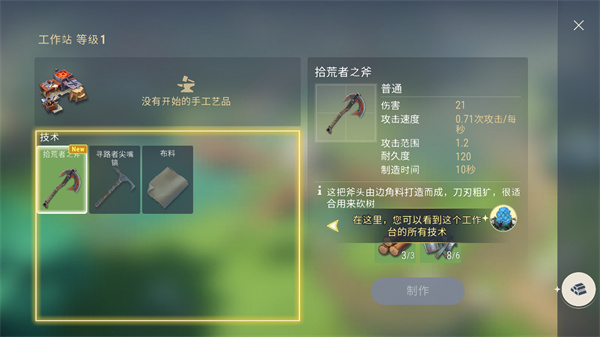9、在工作台上建造一个拾荒者之斧,这是开凿水晶必须的一个道具。