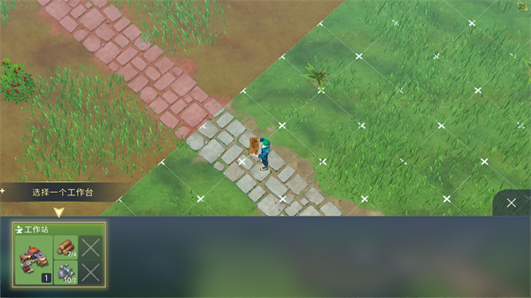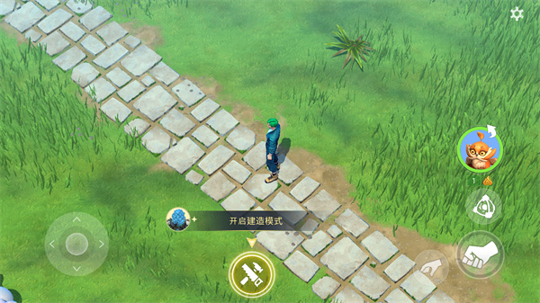 5、拾取足够的资源之后,在空地上点击中间的建造模式,开启建造模式;