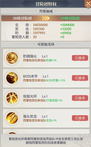 其他经验加成:加入冒险团,可以跨服组团,团员组队打副本有属性集成,(例如伤害增加和经验增加等等)冒险团还有等级奖励,可以获取大量钻石!