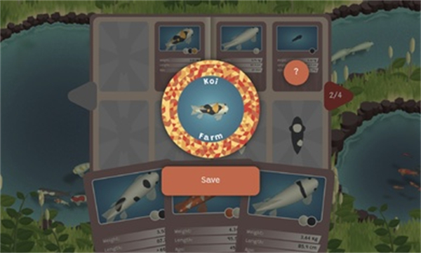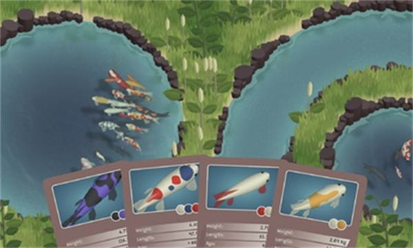 1、具有多种不同的锦鲤等待着玩家的培育,不同的锦鲤有着不同的颜色;