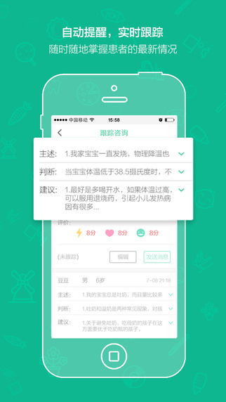 大白医生是一款专门针对儿科医生推出的医生版客户端。帮助医生及时解答患者咨询、轻松管理诊疗档案、自动跟踪患者咨询。