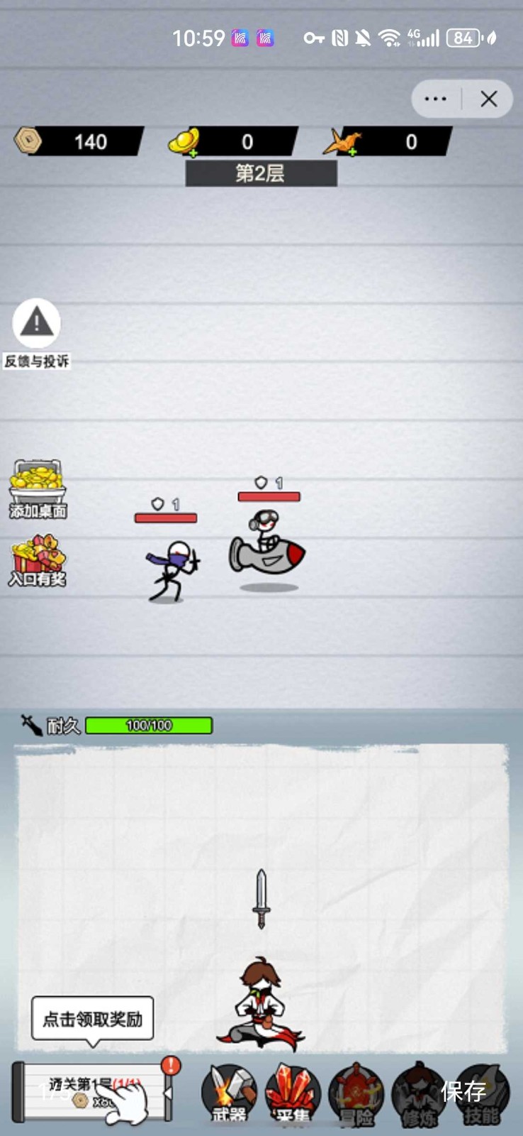 3、轻松的养成机制,开局一把普通铁剑也可以通过不断升级制造出绝世神兵,更有无数武林秘籍等你来拿。