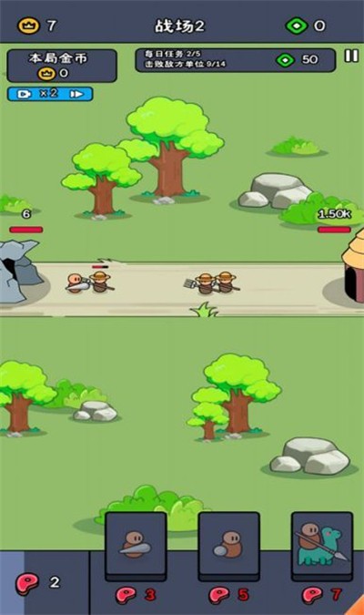 1、游戏主旨玩法轻松,指挥小兵军团,发起冲锋,突破重重难关,战胜所有敌人;
