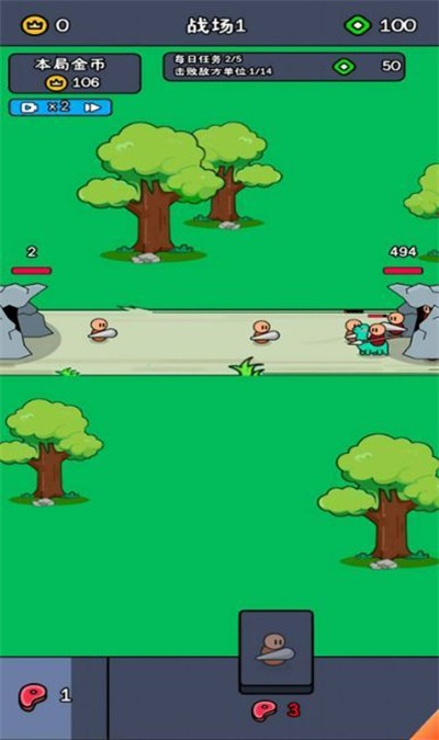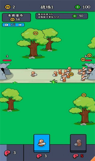 3、独特的养成机制,沿途收集金币和道具,解锁更加强大的小兵种类,提升战力。