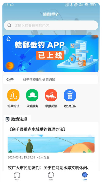 赣鄱垂钓app是一款十分专注专业的江西省垂钓服务内容使用的软件,通过这款软件随时可以了解到最新的江西垂钓的政策和法规的内容,在线上举报反馈或者是选择购买钓鱼的钓具等内容,欢迎有需要的用户们直接去进行下载。